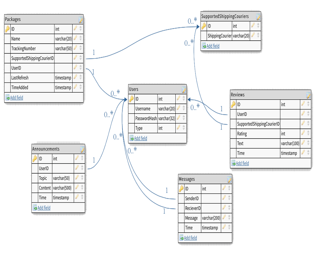 The project will act as communication tool between shipping couriers and customers. The customers (which are the regular users in this project) will be able to track their packages, send direct messages to the shipping courier if they have any inquires or issues and review/rate the shipping courier. On the other hand, the shipping couriers will be able to read their customers reviews, reply to customers’ messages and post announcements about their services (holiday, storms, issues etc...) which the users can read.